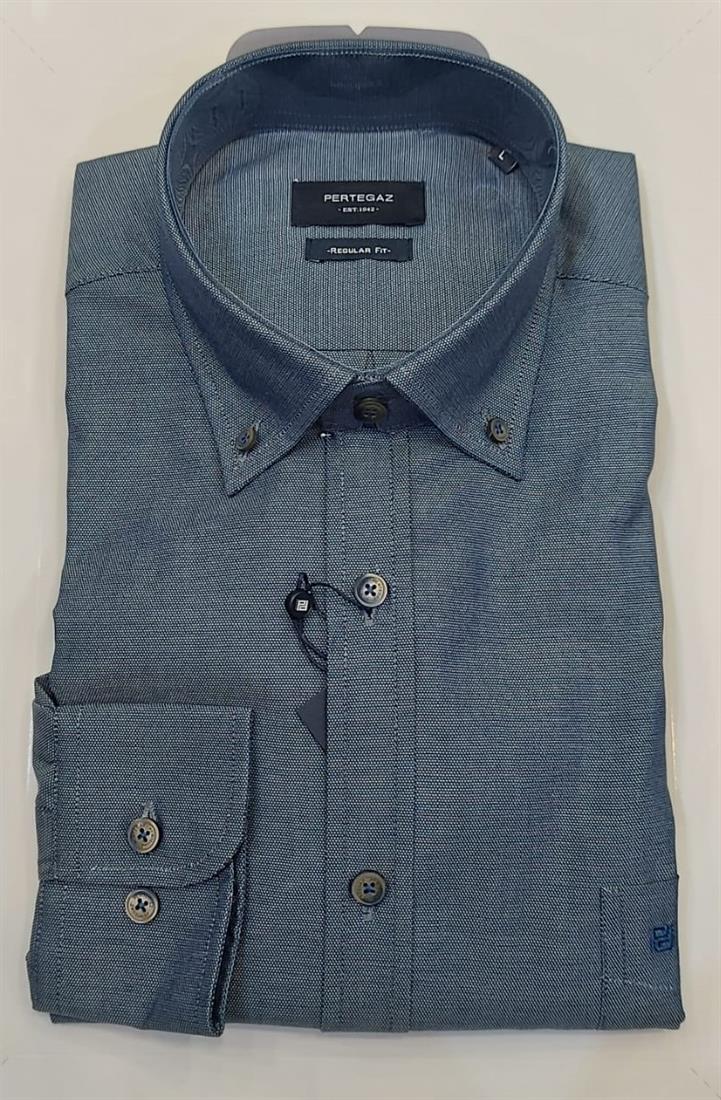 Pertegaz camisa con bolsillo y botones en cuello de cuadros para hombre