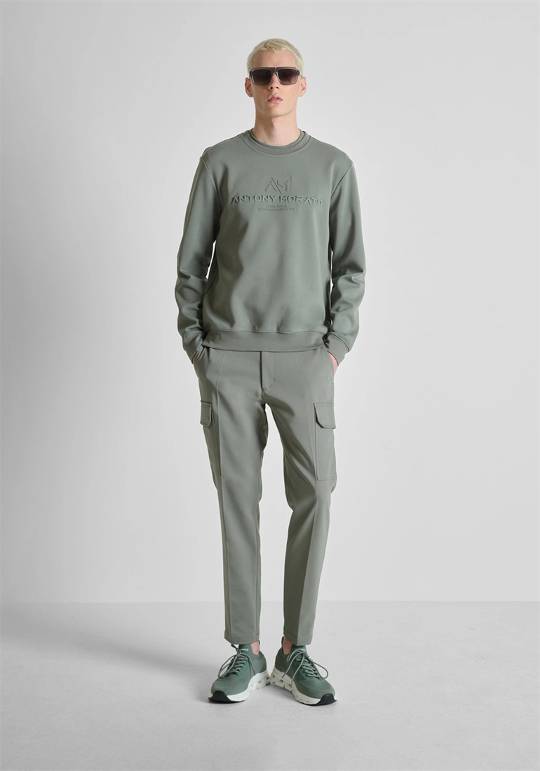 Esta sudadera de cuello redondo de Antony Morato tiene un corte regular y está confeccionada con una suave mezcla de algodón con elaboración «interlock». El monograma y el logotipo en «lettering» se unen para dar vida a un estampado tono sobre tono en la parte delantera. Una prenda versátil, perfecta para completar tus «looks» informales.