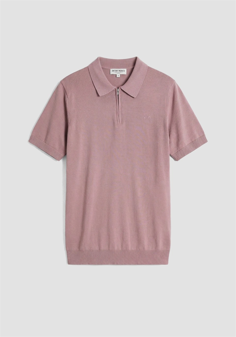 Para la nueva colección, Antony Morato firma este polo de manga corta y corte holgado, confeccionado en suave tejido de mezcla de algodón de color rosa empolvado. Con un corte regular, la prenda se caracteriza por el refinado cuello italiano, completado por el cierre frontal con cremallera. El logotipo estampado en el lado del corazón completa la prenda.