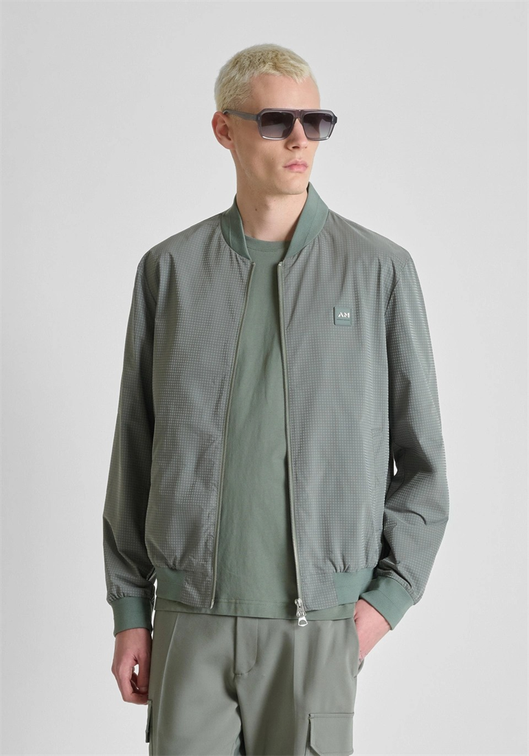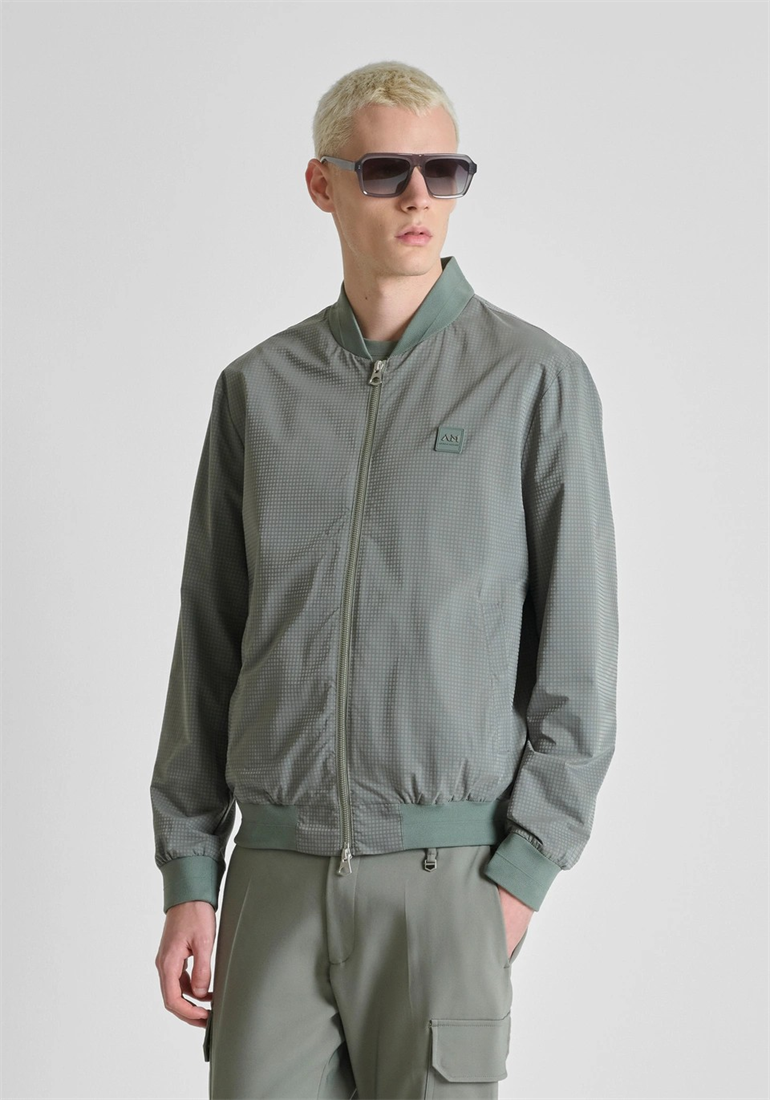 Antony Morato firma esta bómber de corte «regular fit», confeccionada con un tejido técnico ligero y resistente. Propuesta en la variante verde agave, esta prenda de abrigo se caracteriza por un microestampado geométrico en toda la prenda y por el cuello, los puños y el bajo tono sobre tono. El diseño se completa con dos bolsillos laterales y una abertura con cremallera con doble tirador. El parche con el logotipo, aplicado en el pecho en el lado del corazón, aporta una nota fácil de reconocer a una prenda cuidada hasta el más mínimo detalle.