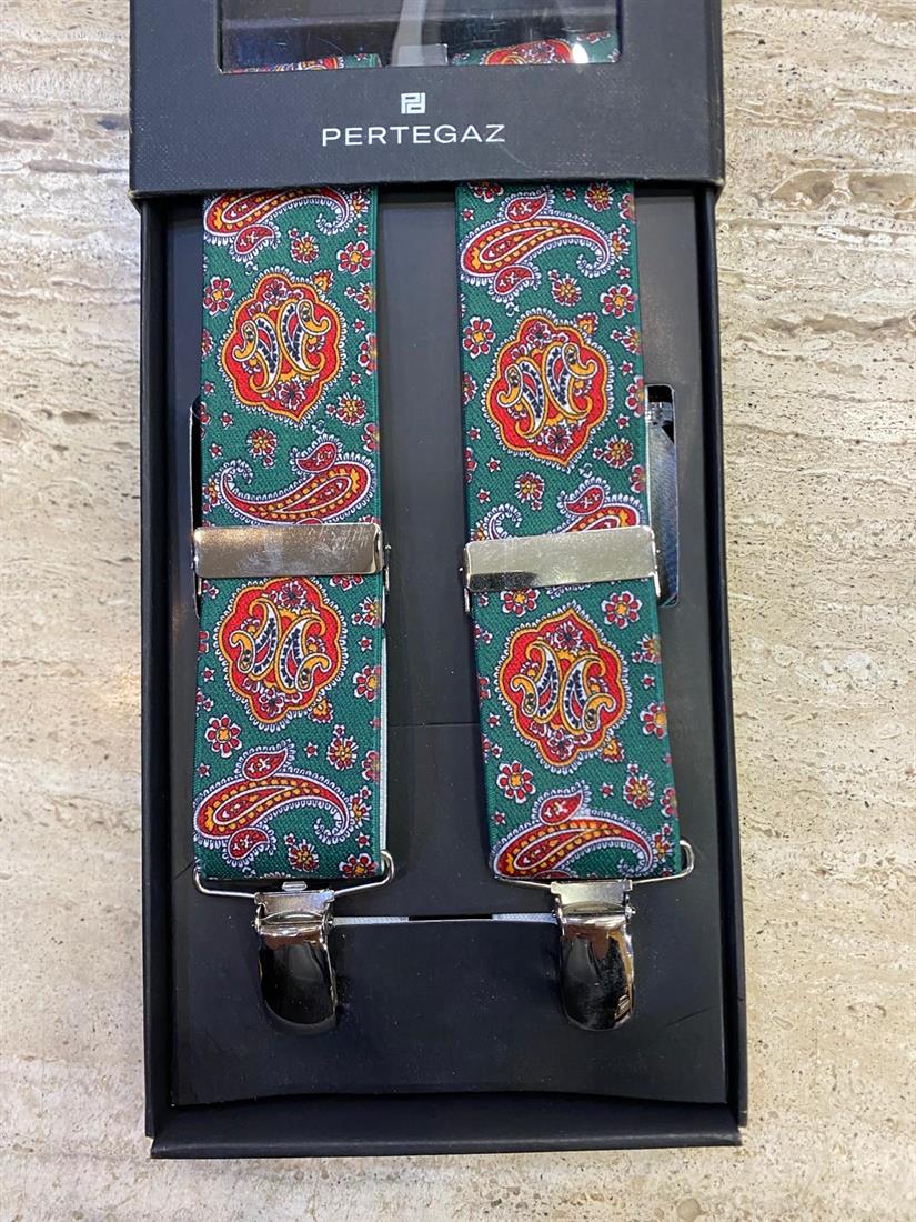 Tirantes de Pertegaz fondo verde y mezclado con rojo y naranja.