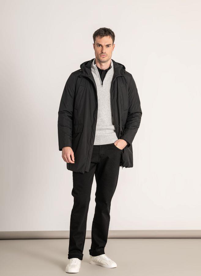 Parka negra para la lluvia con capucha para hombre